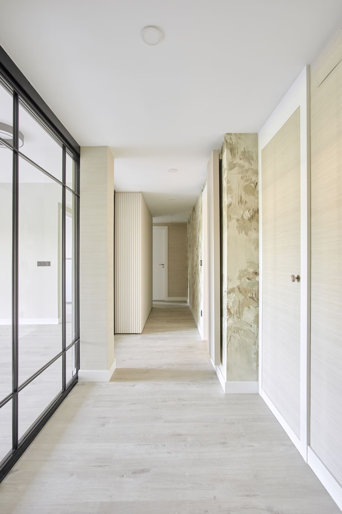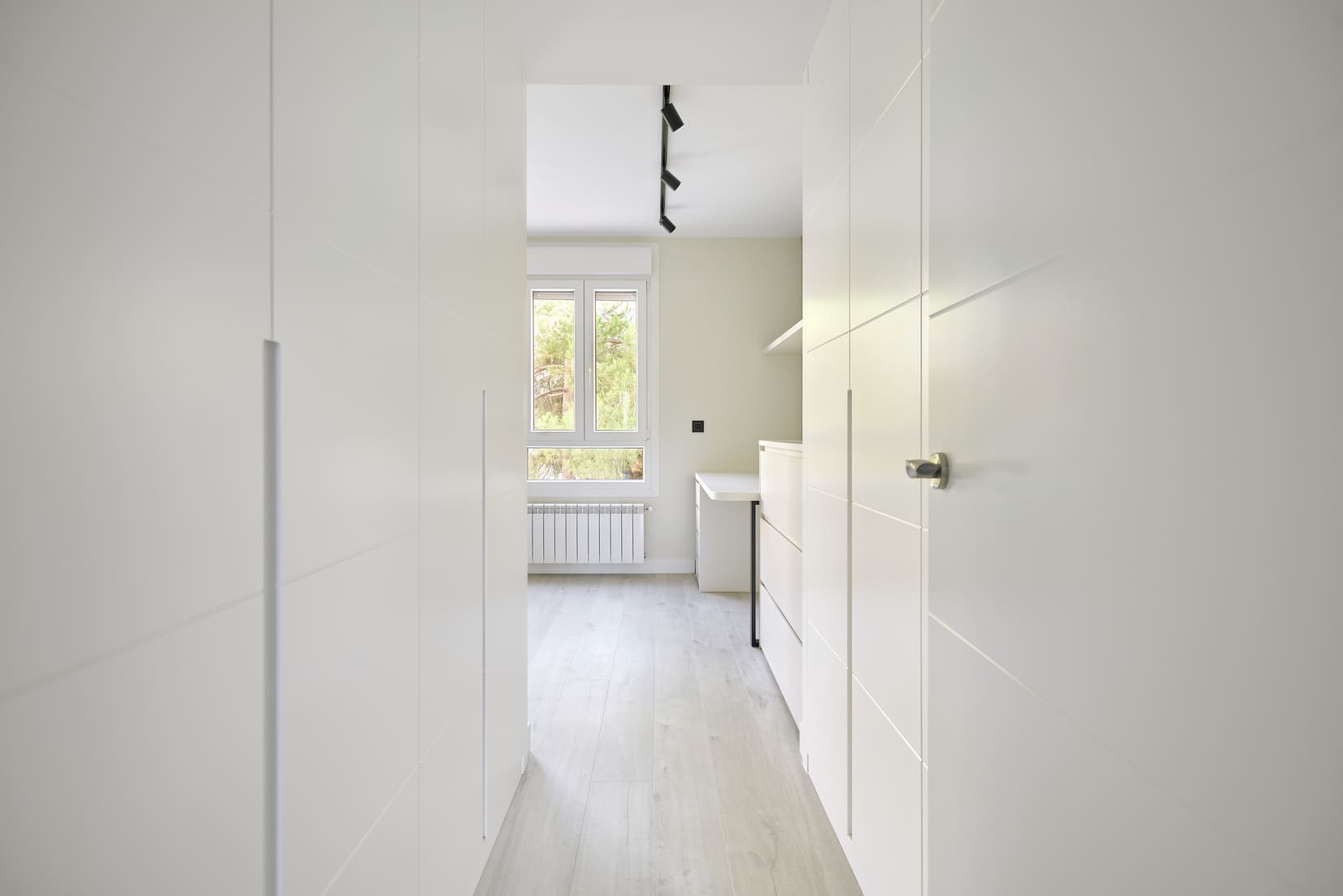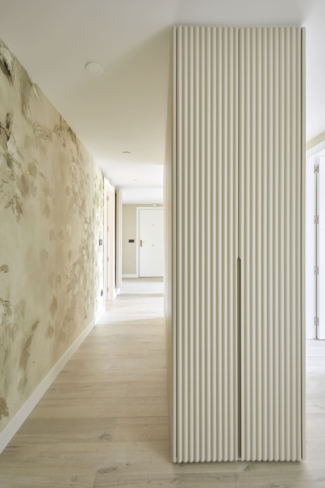- Se diseñó un sistema de almacenaje oculto en pasillo y zona de transición, quedando como de las piezas más especiales y exclusivas de este proyecto.