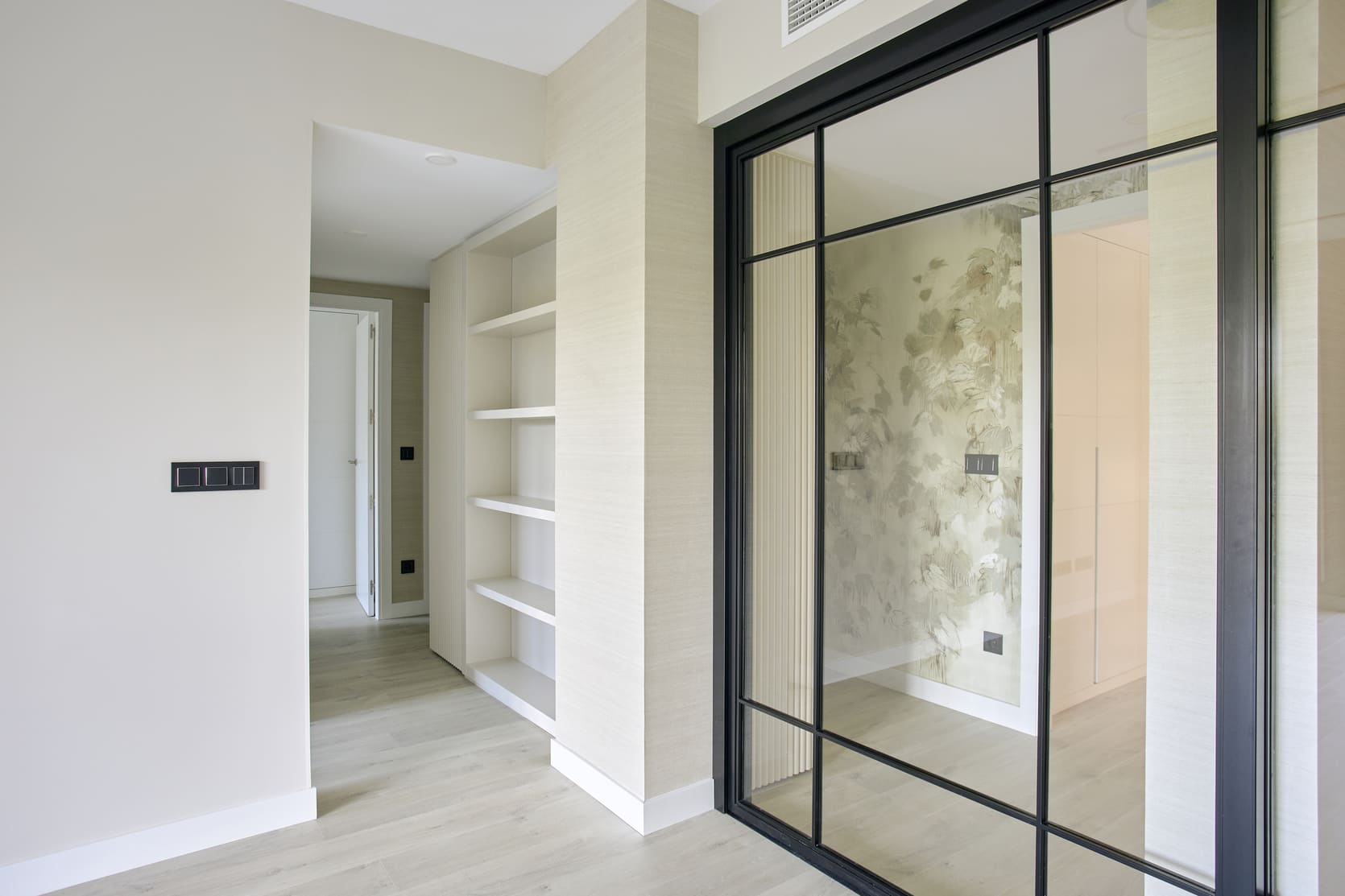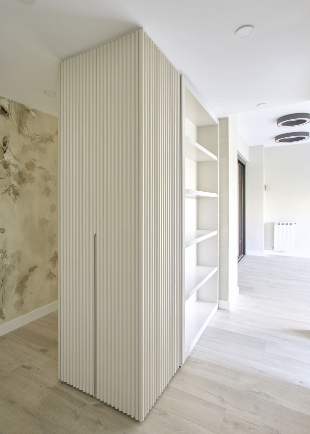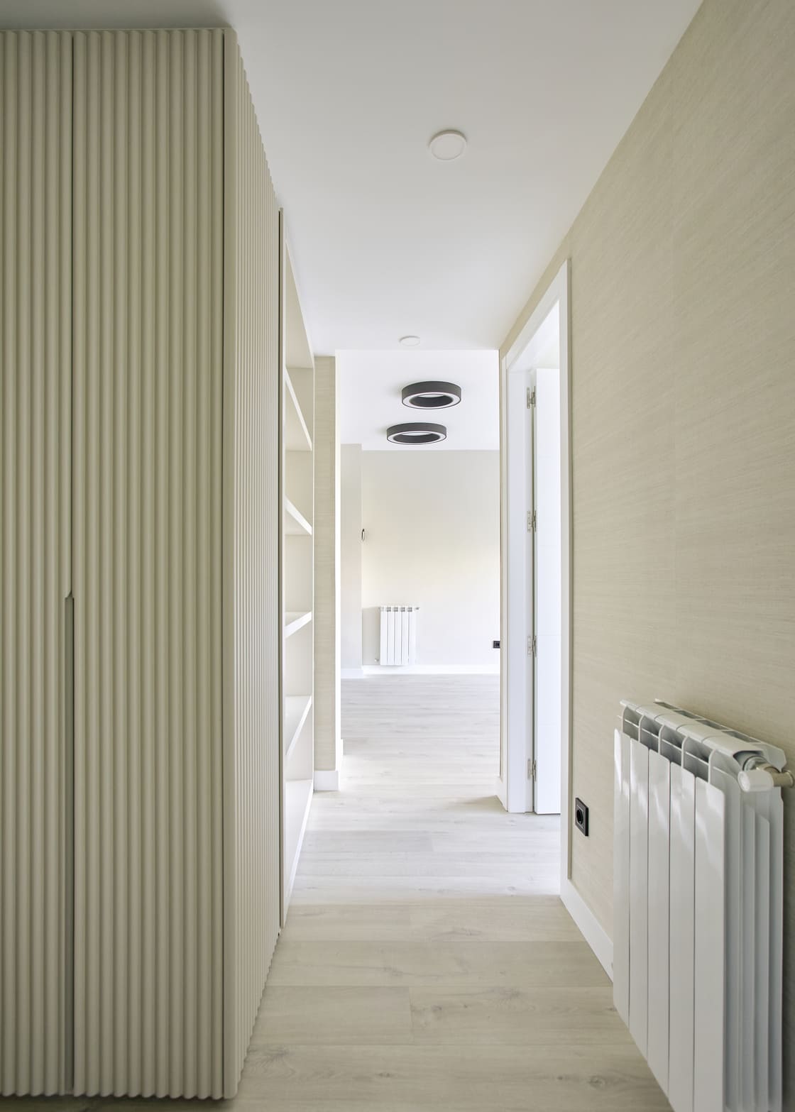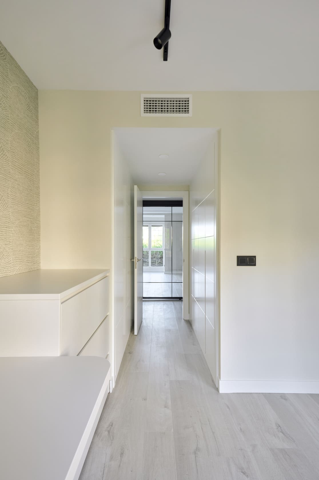 - Se diseñó un sistema de almacenaje oculto en pasillo y zona de transición, quedando como de las piezas más especiales y exclusivas de este proyecto.